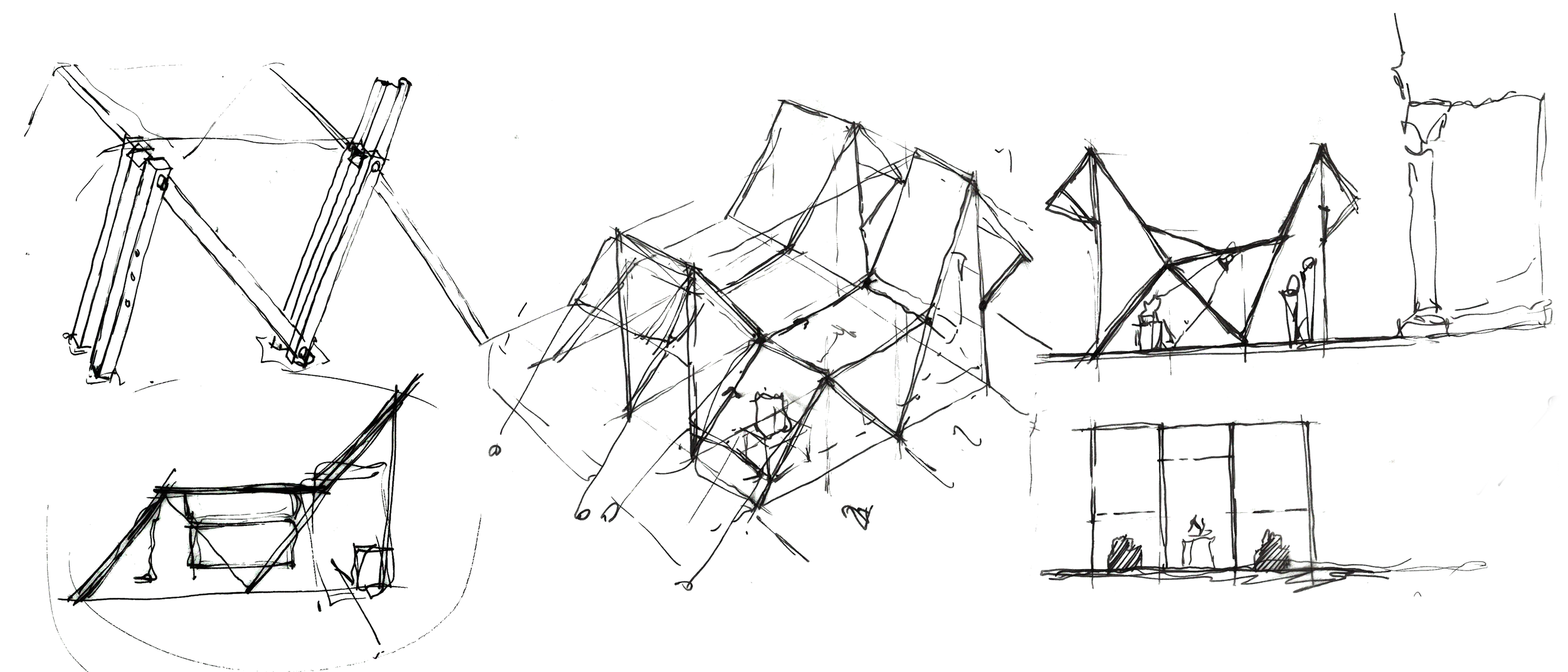 As the Physical Shadow Chair of the exhibition, I worked closely with my colleagues to lead the design and fabrication of the pavilion for the Welsh School of Architecture’s annual show. The theme, “UnFold,” directly informed the concept, I sketched the initial idea for a structure that could physically fold, capturing the spirit of the exhibition. With the support of my team, we expanded the idea and brought it to life. I am very fortunate to see a design progress from my initial sketches to a fully realised built structure.